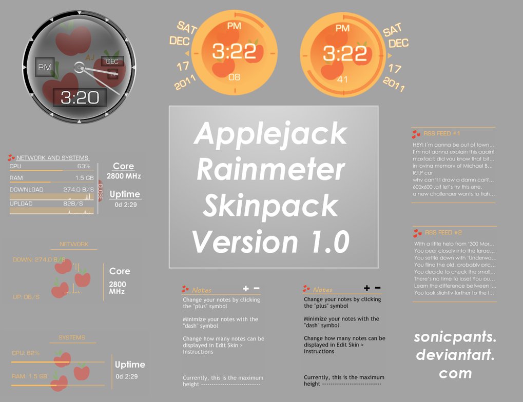 Applejack is an excellent Rainmeter Skins developed for Windows 7. Applejack Rainmeter Skins is a Rainmeter Skins. Windows7themer.com provides you the best Windows 7 Rainmeter Skins which is available for free download. Applejack is one of the most downloaded Rainmeter Skins for Windows 7.