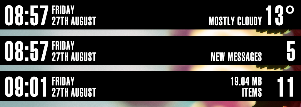 Bold Uppercase is an excellent Rainmeter Skins developed for Windows 7. Bold Uppercase Rainmeter Skins is a Technology Rainmeter Skins. Windows7themer.com provides you the best Windows 7 Rainmeter Skins which is available for free download. Bold Uppercase is one of the most downloaded Rainmeter Skins for Windows 7.