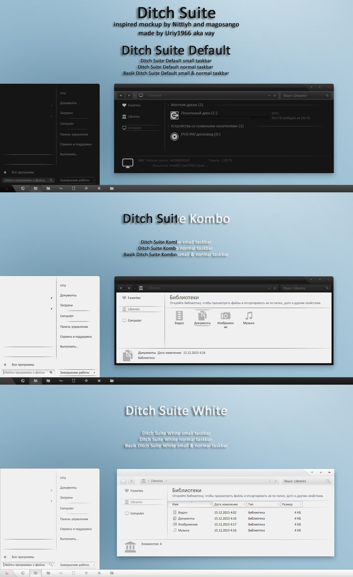Ditch suite is an excellent Visual Styles developed for Windows 7. Ditch suite Visual Styles is a Applications Visual Styles. Windows7themer.com provides you the best Windows 7 Visual Styles which is available for free download. Ditch suite is one of the most downloaded Visual Styles for Windows 7.