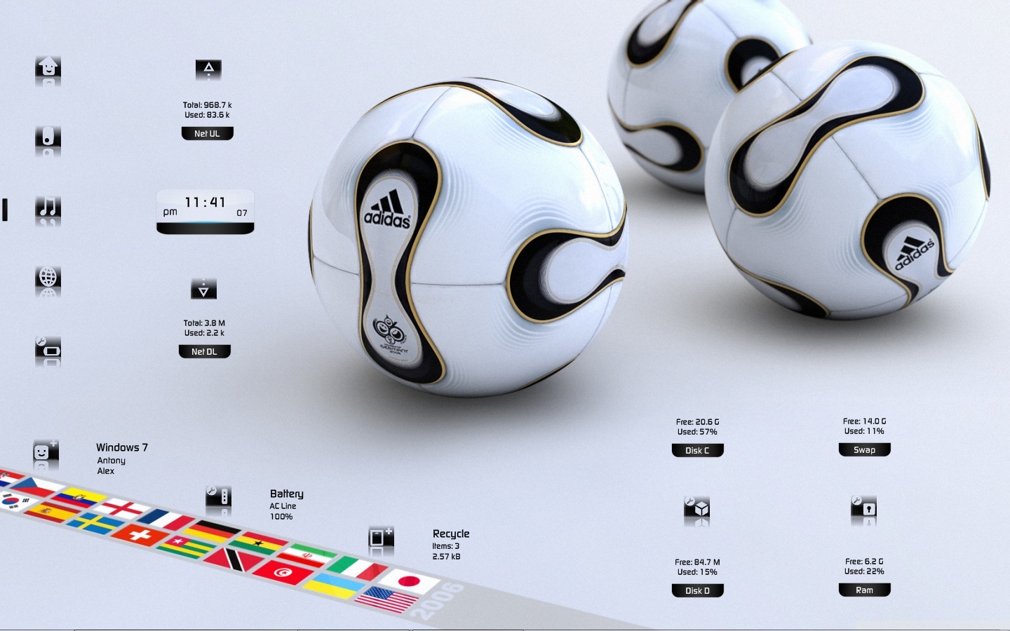 FOOTBALL is an excellent Rainmeter Skins developed for Windows 7. FOOTBALL Rainmeter Skins is a Rainmeter Skins. Windows7themer.com provides you the best Windows 7 Rainmeter Skins which is available for free download. FOOTBALL is one of the most downloaded Rainmeter Skins for Windows 7.