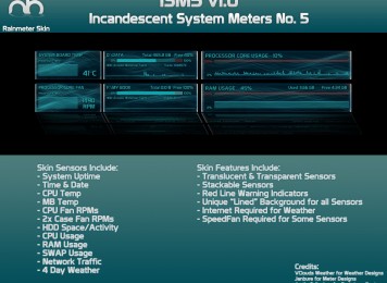 ISM 5 is an excellent Rainmeter Skins developed for Windows 7. ISM 5 Rainmeter Skins is a Technology Rainmeter Skins. Windows7themer.com provides you the best Windows 7 Rainmeter Skins which is available for free download. ISM 5 is one of the most downloaded Rainmeter Skins for Windows 7.
