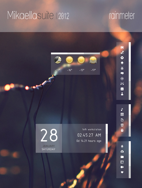 Mikaella is an excellent Rainmeter Skins developed for Windows 7. Mikaella Rainmeter Skins is a Technology Rainmeter Skins. Windows7themer.com provides you the best Windows 7 Rainmeter Skins which is available for free download. Mikaella is one of the most downloaded Rainmeter Skins for Windows 7.