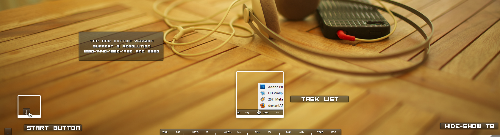 NocheBar Desky Windows 7 Rainmeter Skin