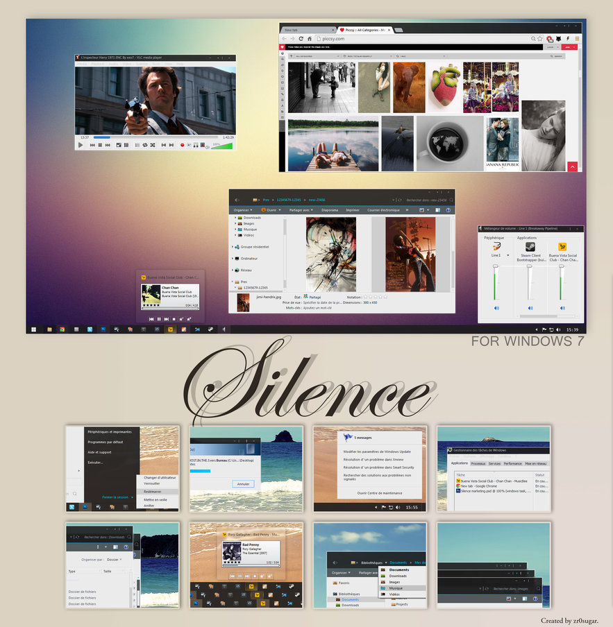 silence is an excellent Visual Styles developed for Windows 7. silence Visual Styles is a Visual Styles. Windows7themer.com provides you the best Windows 7 Visual Styles which is available for free download. silence is one of the most downloaded Visual Styles for Windows 7.