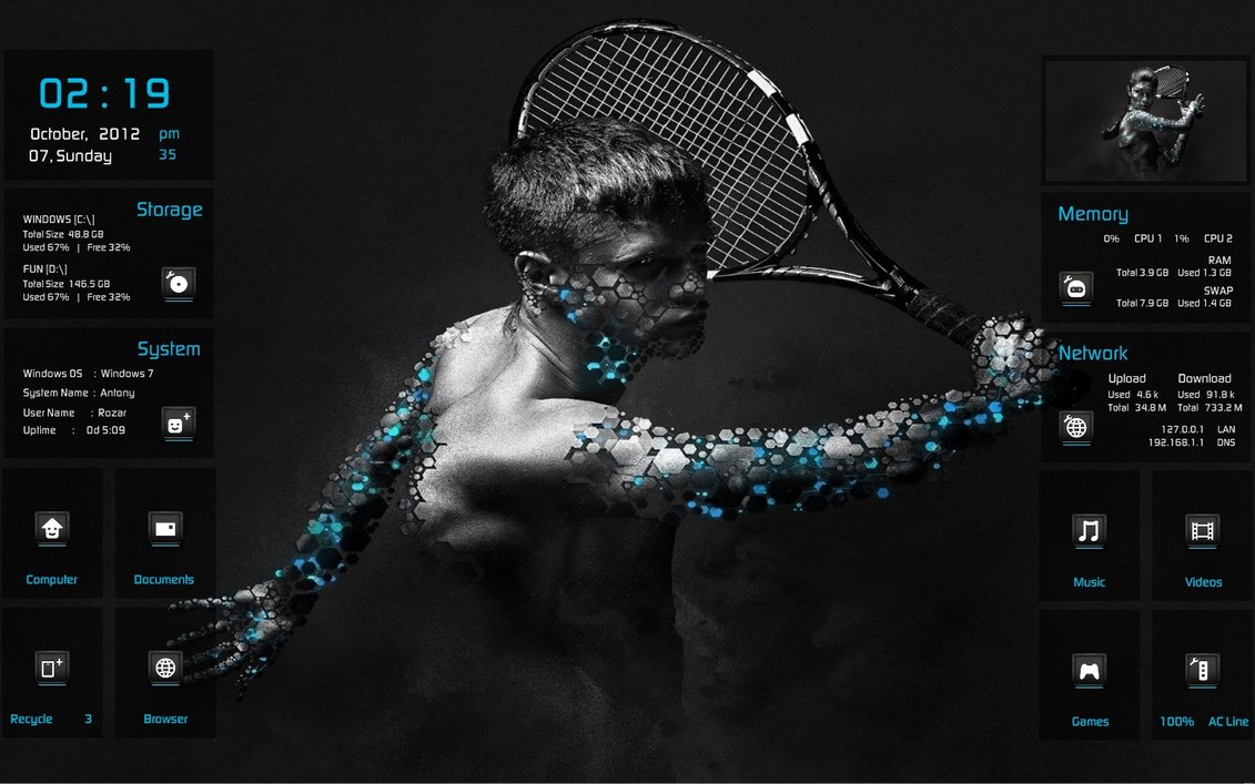 Sports windows7 Rainmeter Theme is an excellent developed for Windows 7. Sports windows7 Rainmeter Theme is a . Windows7themer.com provides you the best Windows 7 which is available for free download. Sports windows7 Rainmeter Theme is one of the most downloaded for Windows 7.