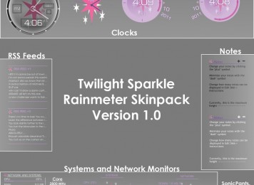 Twilight Sparkle is an excellent Rainmeter Skins developed for Windows 7. Twilight Sparkle Rainmeter Skins is a Technology Rainmeter Skins. Windows7themer.com provides you the best Windows 7 Rainmeter Skins which is available for free download. Twilight Sparkle is one of the most downloaded Rainmeter Skins for Windows 7.