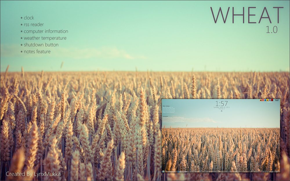Wheaty is an excellent Rainmeter Skins developed for Windows 7. Wheaty Rainmeter Skins is a Technology Rainmeter Skins. Windows7themer.com provides you the best Windows 7 Rainmeter Skins which is available for free download. Wheaty is one of the most downloaded Rainmeter Skins for Windows 7.