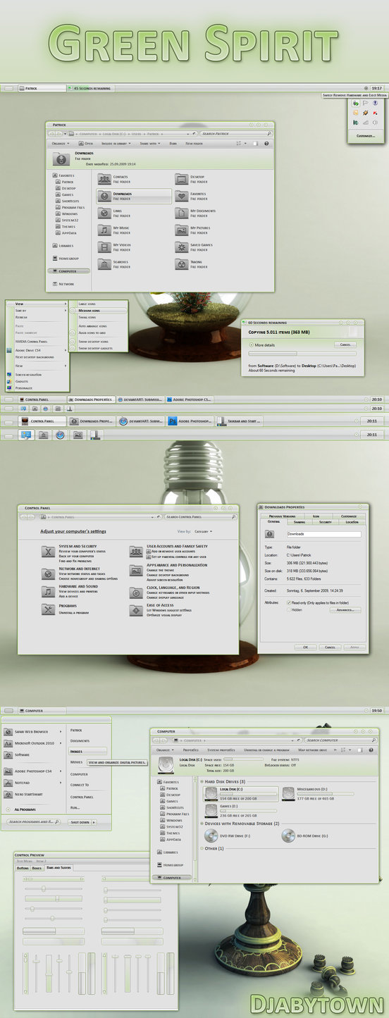 Green spirit is an excellent Visual Styles developed for Windows 7. Green spirit Visual Styles is a Abstract Visual Styles. Windows7themer.com provides you the best Windows 7 Visual Styles which is available for free download. Green spirit is one of the most downloaded Visual Styles for Windows 7.