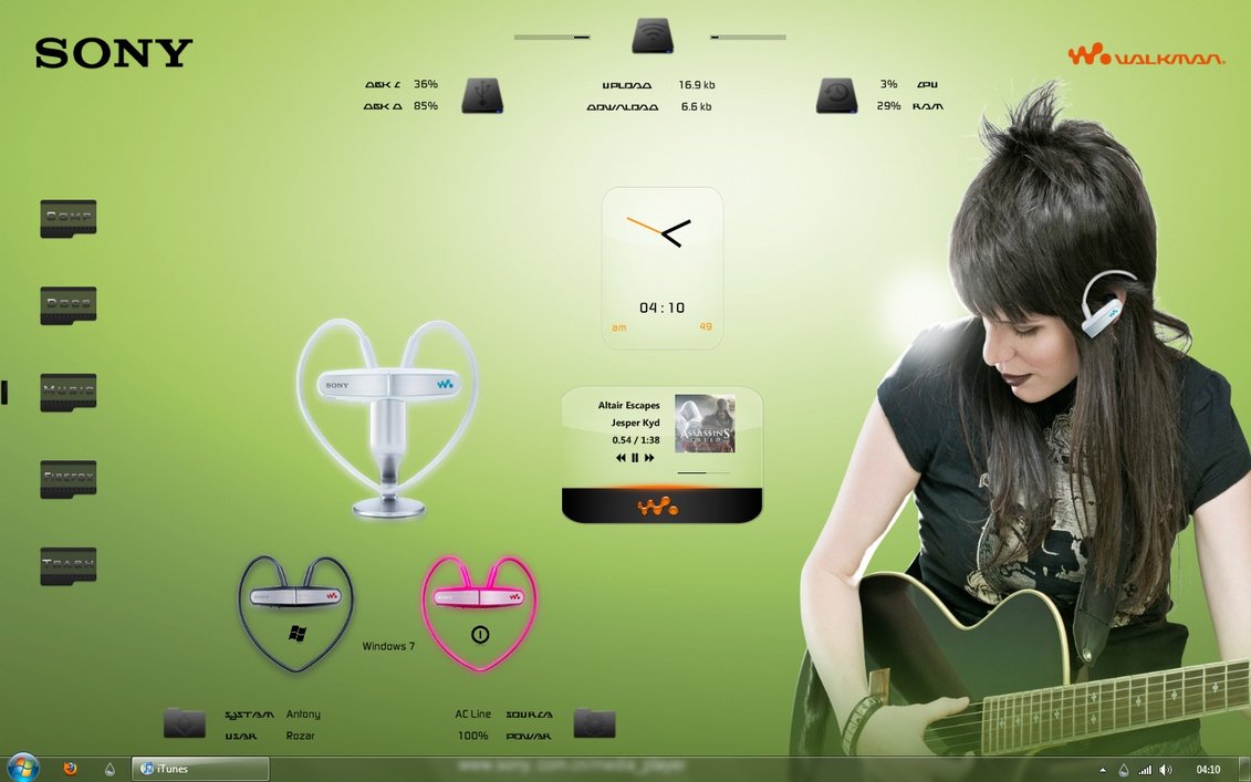 Sony Walkman Windows7 Rainmeter Theme is an excellent Rainmeter Skins developed for Windows 7. Sony Walkman Windows7 Rainmeter Theme Rainmeter Skins is a stylish, Technology Rainmeter Skins. Windows7themer.com provides you the best Windows 7 Rainmeter Skins which is available for free download. Sony Walkman Windows7 Rainmeter Theme is one of the most downloaded Rainmeter Skins for Windows 7.